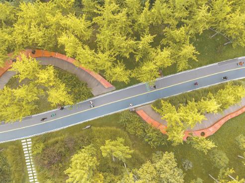 8月5日,市民在温县子夏公园健身步道运动健身。近年来,该县加大城市公园建设力度,因地制宜在公园、街区空闲地科学设置体育健身场所,建设体育公园,打造市民“15分钟健身圈”,积极倡导全民健身,让体育运动融入市民日常生活。