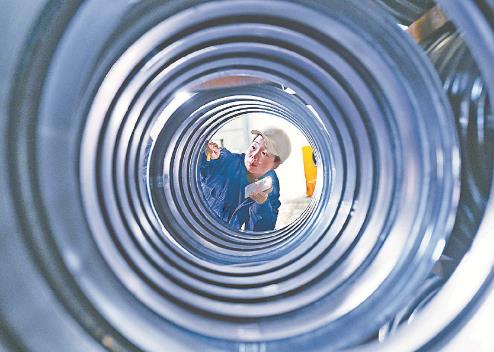 8月14日,位于博爱经济技术开发区的宏源精工车轮(焦作)有限公司技术人员在检验车轮质量。该公司用技术实力打造装备产业新高地,先后开发各种车轮型钢、云轨核心配件等产品500余种,是美国卡特彼勒、瑞典沃尔沃、徐工、厦工、宇通、比亚迪等国内外知名企业的核心供应商,年销售收入7000多万元。