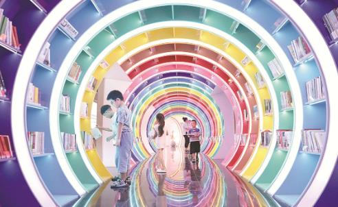 8月17日,孩子们在周窑图书馆时光隧道区阅读。该馆位于中站区龙翔街道周窑村,是第一家河南省图书馆乡村分馆,馆内设有时光隧道区、儿童手作区、分阶梯读书区、文创产品区等区域,陈列图书涵盖文学、艺术、科普、历史、少儿等领域。