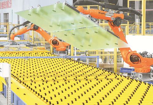8月17日,位于博爱经开区的焦作安彩新材料有限公司自动化堆垛机在生产光伏玻璃。近年来,该公司持续加大技术改造力度,对年产18万吨压延太阳能电池封装玻璃设备进行技术改造升级,从原来年排放氮氧化合物880吨下降到如今的76吨以下,通过技术改造降耗增效的同时,也为环保减排作出了贡献。
