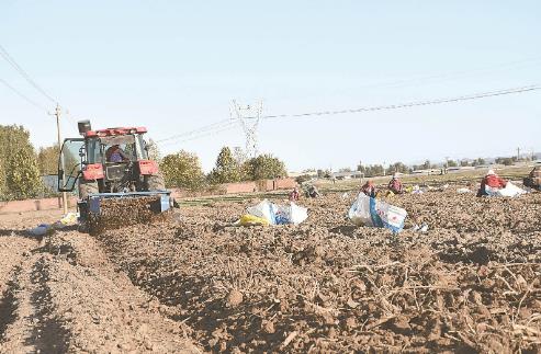 12月7日,孟州市会昌街道东曹村村民在滩区中药材种植基地收获防风。近年来,该市除种植好四大怀药外,还培育种植白芷、防风、丹参、柴胡等20余个中药材品种。今年全市中药材种植面积超过4万亩,年产值达1.2亿元。