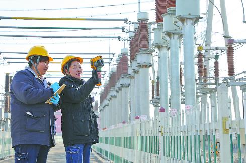 12月17日,温县供电公司职工在拳乡变电站巡查。连日来,温县遭遇寒潮低温天气,当地供电公司加强应急值守、电网运行调控和电网设备特巡,多措并举做好寒潮防范应对和电力保供工作。