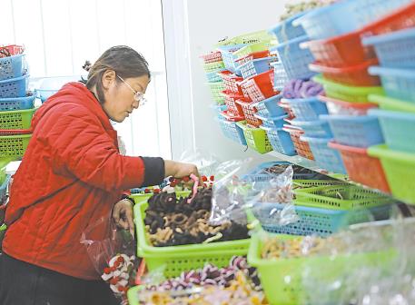 12月18日,沁阳市紫陵镇皮筋头饰产业园区,村民在加工制作皮筋饰品。该产业园区位于坞头村,占地5.8公顷,实行“党委+公司+商户+村集体经济合作社+农户”一体化经营,带动了村民致富。
