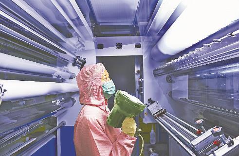 1月8日,焦作嵩阳光电科技有限公司技术人员在检查产品质量。该公司致力于触摸屏柔性导电膜、柔性薄膜晶体管、光电功能薄膜等柔性材料的研发和生产,先后研发出多种新产品,打破了外国企业长期垄断的局面。目前,该公司拥有专利17项,已经形成年产220万平方米的生产能力。