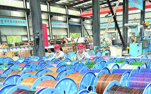 7月26日,位于修武经济技术开发区的河南华东电缆股份有限公司工人在生产电缆。该公司以科技为先导,集聚人才研发高低压电缆、特种电缆新产品,现有产品十大类千余个品种,长期与国家电网、万科等企业达成合作,部分产品出口“一带一路”国家和地区。目前,该公司年销售收入达5.5亿元。