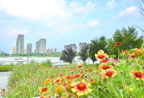 昨日,天气晴好,在市沁泉湖公园,白云、蓝天与花朵交织在一起,构成一幅唯美画卷。