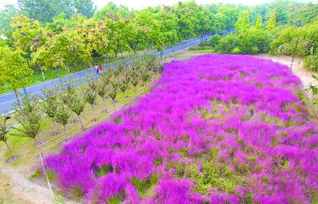 近来,粉黛乱子草进入观赏期。10月8日,市龙源湖公园软软糯糯的粉黛乱子草连绵成片,形成粉红色的“海洋”,浪漫至极,吸引健身的市民停下脚步打卡拍照。