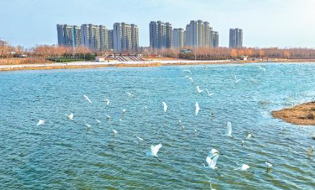 1月14日,市大沙河生态公园里成群的白鹭在水面翩翩起舞,自由翱翔。近年来,大沙河生态环境的改善,引来了大批白鹭在这里栖息、觅食、繁衍,除了白鹭外,还有苍鹭、黑翅长脚鹬、斑头雁、红头潜鸭等。如今的大沙河已成为鸟类的天堂。
