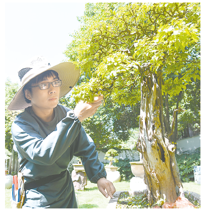 昨日,市盆景园工作人员在对园内盆景进行精细修剪。该园根据园内盆景、树木、绿篱的生长情况进行造型修剪,全面提升精细化管养水平和绿化景观效果,为市民提供良好的游园环境。