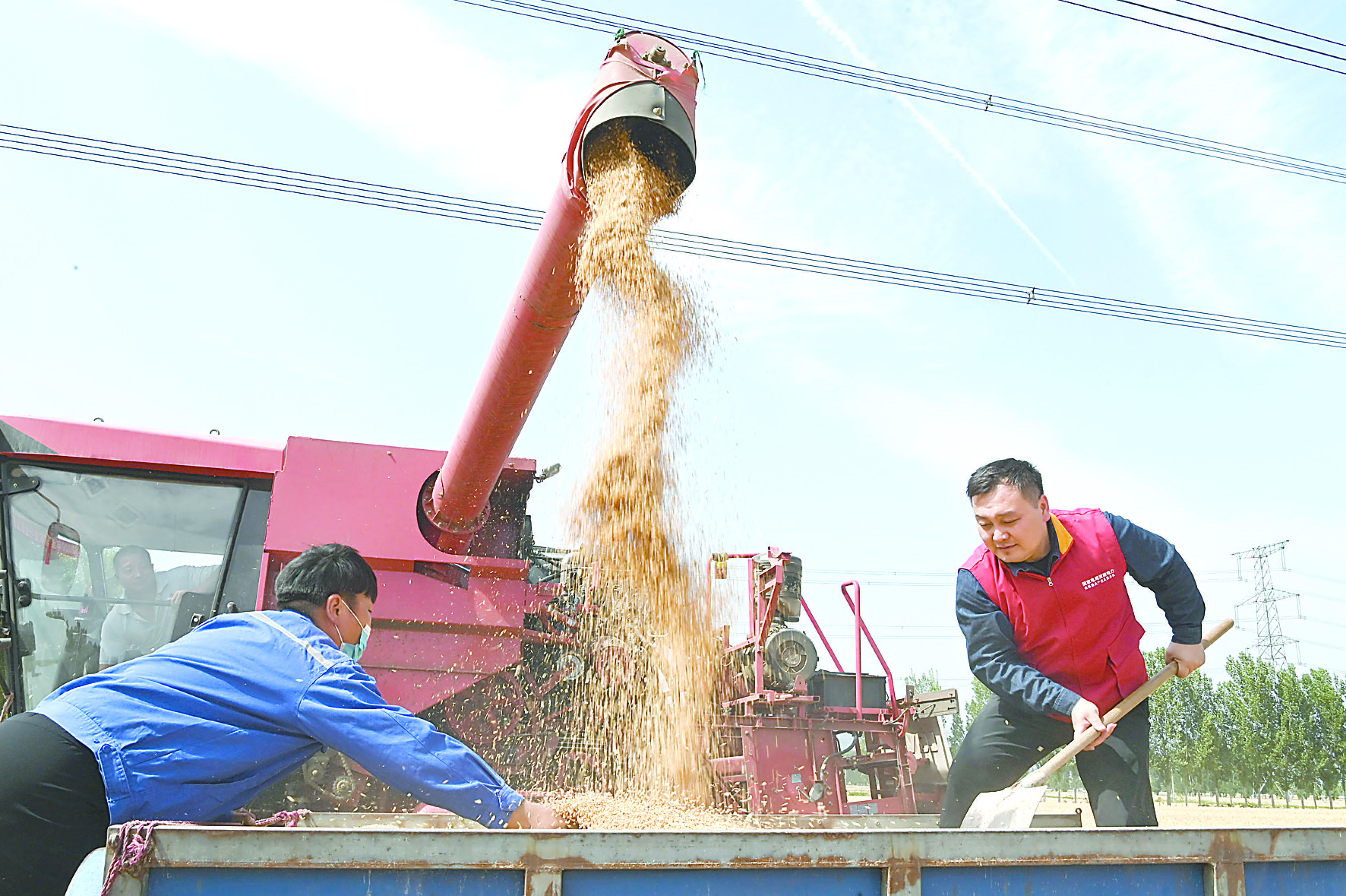 5月30日,沁阳市供电公司焦裕禄共产党员服务队志愿者,在该市西向镇新庄村帮助群众收获小麦。目前正值小麦收获期,沁阳市全力做好“三夏”志愿服务工作,30支志愿者服务队走进田间地头,开展“志愿服务到麦田”文明实践活动,抢抓晴好天气,帮助群众收获小麦,确保夏粮颗粒归仓。