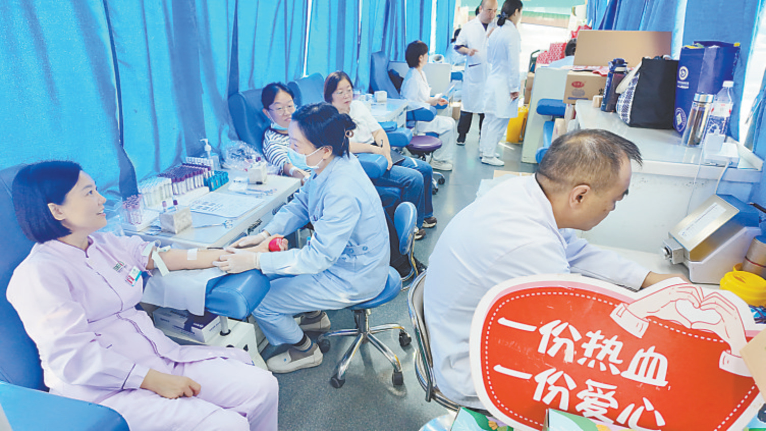 图④ 市中心血站和联勤保障部队第988医院(焦作院区)联合组织开展“我为祖国献热血”无偿献血活动。