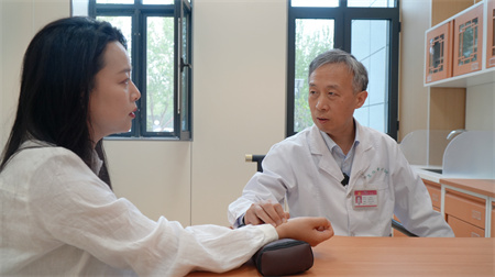 焦作市中青年名中医、市中医院脑病科三区主任宋汉秋为记者把脉问诊。