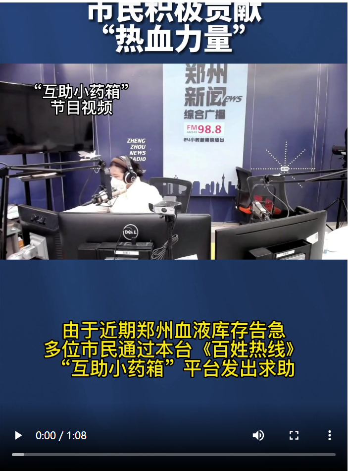 最近,受疫情和冬季献血“淡季”叠加影响,郑州血液库存量告急,多位市民通过本台《百姓热线》“互助小药箱”平台发出用血求助信息,省血液中心联合本台《百姓热线》向公众发出“积极无偿献血”倡议。周末,记者走访街头献血屋发现,不少市民响应号召,贡献一份“热血力量”。