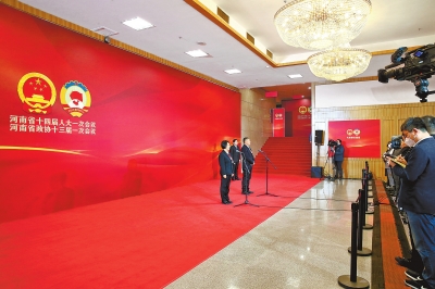 1月14日上午,“代表通道”开启,省人大代表回答记者提问。本报记者 王铮 摄