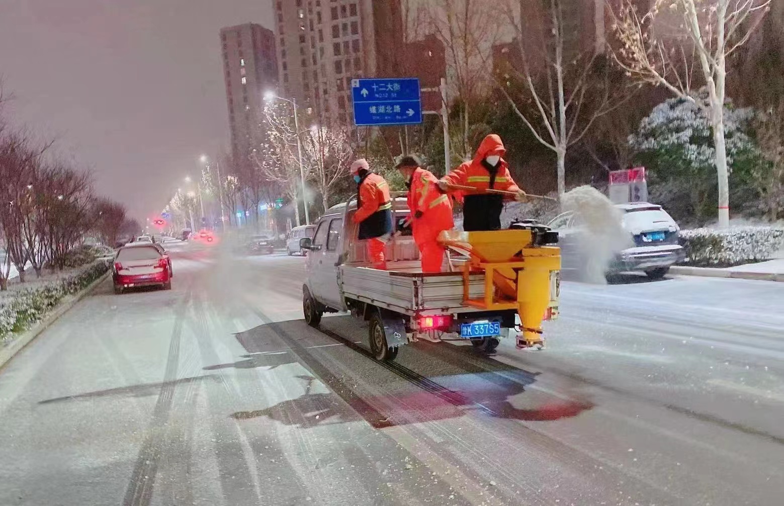 为应对降雪天气,各除雪单位根据各自承担的任务特点,科学组织,按照“机械化除雪为主,人工除雪为辅”的除雪模式,积极开展清除冰雪工作,做到除雪工作昼夜不停,全力保障好道路通行,雪停路通。市城管局班子成员及业务处室负责人按照预案分工,对分包辖区单位实施不间断检查指导,做到“三个确保”即保畅通、保干净、保运营。