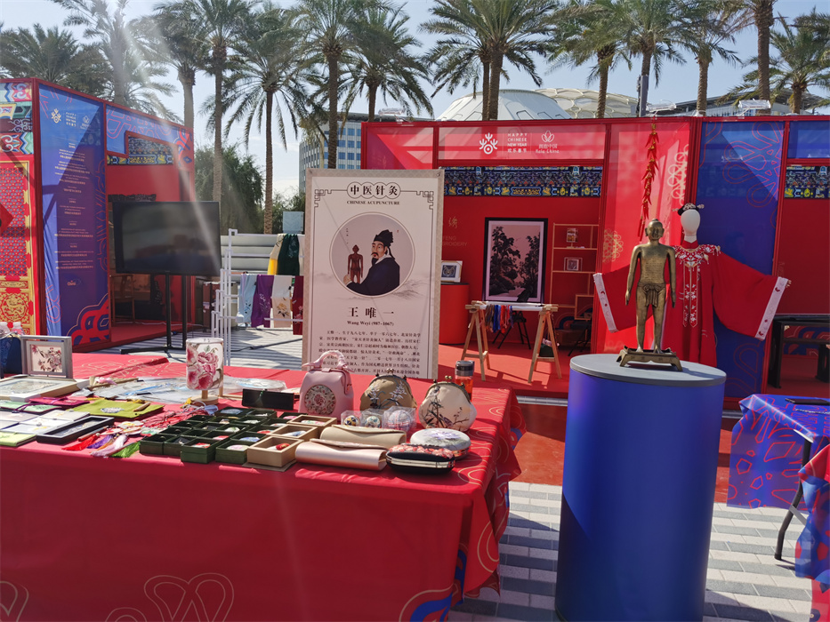 活动中,开封片区专题展厅以浓郁的中国元素为底色,采取传统非遗技艺与文创产品相结合的方式,向迪拜人民展示中华优秀传统文化。官瓷、汴绣、木版年画、五大名窑、兰考古琴、针灸铜人、中国传统服饰、木艺根雕等展品琳琅满目,宋式点茶、汴绣、活字印刷、古琴表演等中国非遗技艺令人叹服。现场游客纷纷驻足,热情参与迎春书法笔会、雕版拓印、斗茶品茶等中国味儿十足的新春活动,亲身体味中华传统文化的魅力。