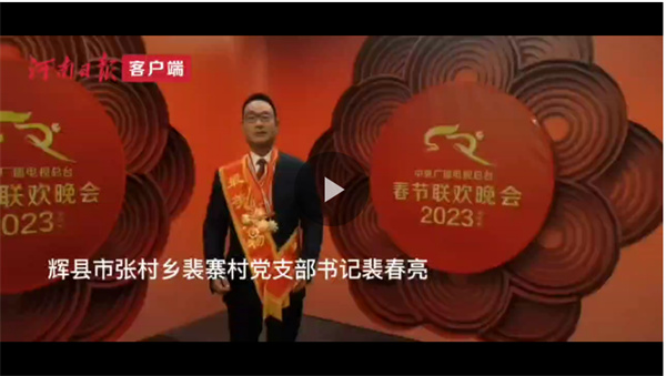 1月21日除夕夜,中央广播电视总台《2023年春节联欢晚会》如约而至,为全球观众献上一场精彩纷呈的文化盛宴,传递向阳而生、蓬勃奋进的精神力量。辉县市张村乡裴寨村党支部书记裴春亮作为“最美奋斗者” 代表出现在春晚现场。