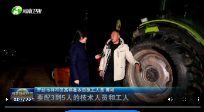 开封市祥符区高标准农田施工人员 张振华:有四十多颗卫星实时为我们服务,操作起来也很方便,任意选两个点,它都可以无人驾驶,不会偏航。