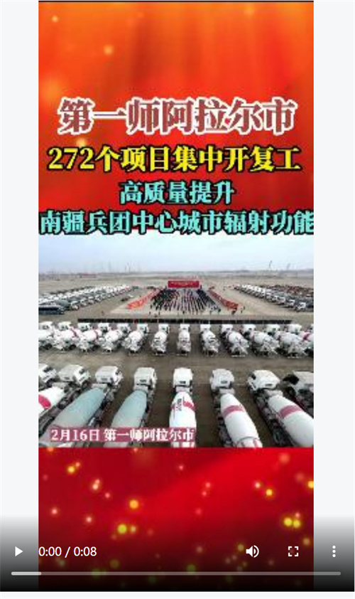 2月16日,新疆生产建设兵团第一师阿拉尔市272个项目集中开复工,高质量提升南疆兵团中心城市辐射功能。