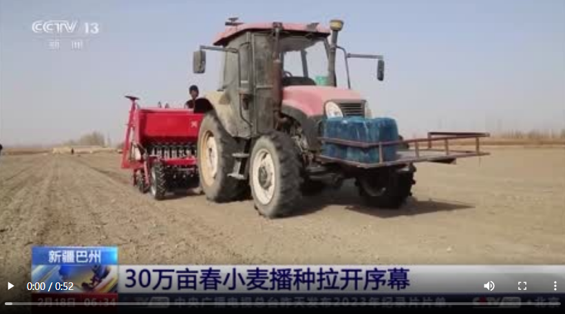 眼下,在新疆巴音郭楞蒙古自治州,30万亩春小麦播种工作由南向北正式拉开序幕。在尉犁县古勒巴格乡阿克其开村,村民李长林家的500亩农田里机声隆隆,农机手驾驶新型施肥播种一体机在田里来回穿梭,一次性完成铺设滴灌带、播种、施肥、覆土、平整等工序,一粒粒小麦种子被陆续播撒进土地里。