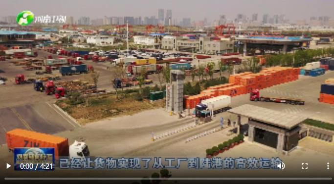 河南广电大象新闻记者 张文翠:这里是郑州国际路港公司 多式联运是指两种或者两种以上的交通工具 相互衔接转运来完成运输的运输过程 也是河南自贸试验区五大服务体系之一 今天有一批“河南造”是如何从工厂到陆港再走出国门呢,我们一起来探访。