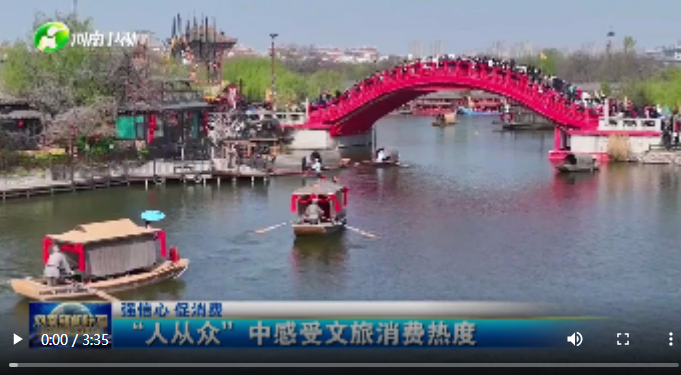 河南省文化和旅游厅副厅长 周耀霞:我们今年这个五一是经过三年疫情后迎来的首个五一假期,游客的消费得到了极大的释放,导致了市场的报复性增长。节前我们进行了统一的安排部署,推出了100个新的消费场景,比如我们的网红酒店呀,特色景区啊,民宿啊,还有我们的露营啊,包括系列的美食等等,另外加上我们节前系列的牡丹花会啊,开封的大宋巡游啊,包括我们的信阳的茶叶节等等,这些节会的造势,让河南文旅迅速地出圈,当然还有我们电视台的这些奇妙游让我们河南文化,再次成为我们这一次五一假期,消费的重要旅游目的地。