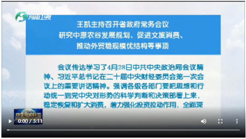 5月8日,省长王凯主持召开省政府常务会议,传达学习近期习近平总书记重要讲话,研究中原农谷发展规划、促进文化和旅游消费、推动外贸稳规模优结构、加强对欧合作等事项。