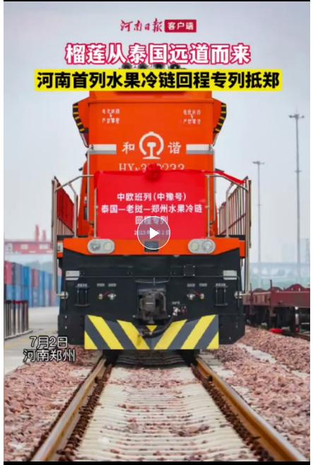 7月2日上午,位于郑州经开区的中铁联集郑州中心站,迎来了中欧班列(中豫号)首列“泰国-老挝-郑州”水果冷链回程专列。这是河南首次通过中老泰铁路从东南亚进口水果,标志着我省成功打通了直达RCEP成员国的水果进口冷链专列物流大通道。