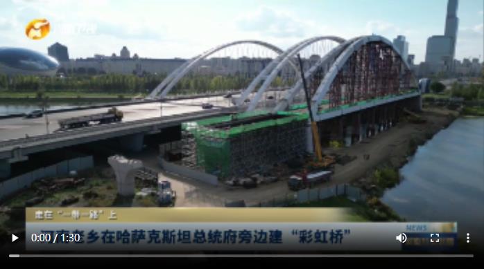 河南广电大象新闻记者 邱亚斐:我现在是在阿斯塔纳的伊希姆河桥上,这座钢结构拱桥是阿斯塔纳轻轨项目中最复杂的工程,它的跨度很大,而且距离总统府只有500米,对各项施工标准要求很高。来自咱们河南二建的50多名施工人员经过四个多月的努力,刚刚完成大桥的合龙。