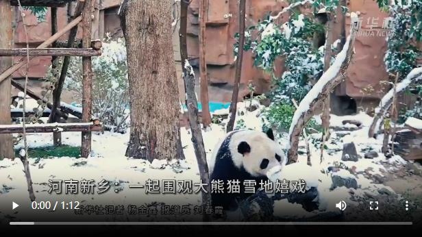 央媒观豫丨河南新乡:一起围观大熊猫雪地嬉戏