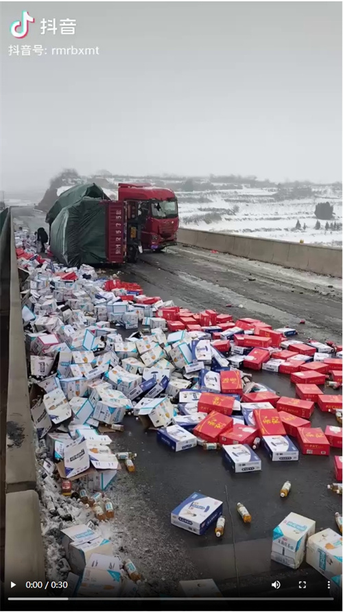 近日,河南三门峡,冰雪天货车侧翻,车上的货物散落一地,众人9小时帮忙搬运装车。他们先把货物整理在一起,再接力搬到车上。为好心人点赞!