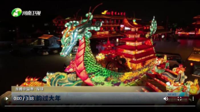 清明上河园营销中心市场部 邢潇月:好的。今年清明上河园呢,为大家打造了大宋国际上元灯会,这过年啊,就要来赏灯。比如我们左手边的呢,就是鱼龙共舞大型创意灯组,它就是根据金明池争标图当中的龙舟的形象,去进行再创新再设计。当然了,景区内还有上百万盏花灯,为大家带来一场艺术与色彩,传统与现代融合的赏灯盛宴。