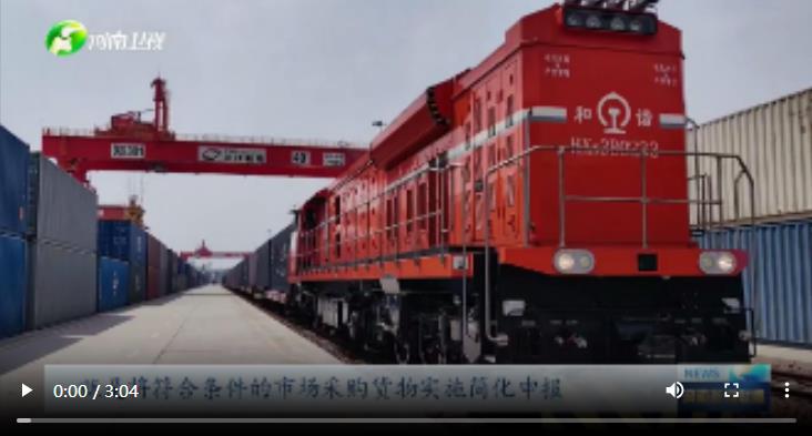 河南广电大象新闻记者 刘建洁:这里是中铁联集郑州中心站,我身后的龙门吊正在紧张地装车作业,待会儿这辆满载着化肥、轮胎、汽车零配件、陶瓷制品等商品的“中欧班列+市场采购贸易”模式的出口班列将开往老挝(万象),这也是河南省中小微企业“走出国门”的又一新途径。