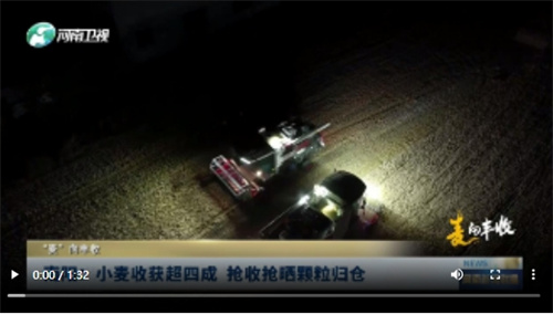 河南广电大象新闻记者 蔺建伟:我现在所在的位置是在唐河县昝岗乡的赵岗村,现在已经是晚上的11点了,在我身后的这块麦田里,当地的一家合作社仍然组织了6台机器在进行收获作业。