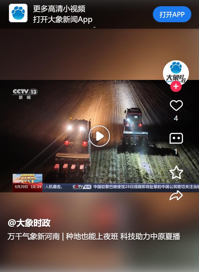 万千气象新河南 | 种地也能上夜班 科技助力中原夏播