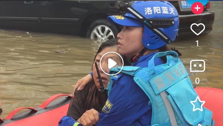 南阳暴雨被救老人手直发抖 救援人员紧紧抱住进行安抚