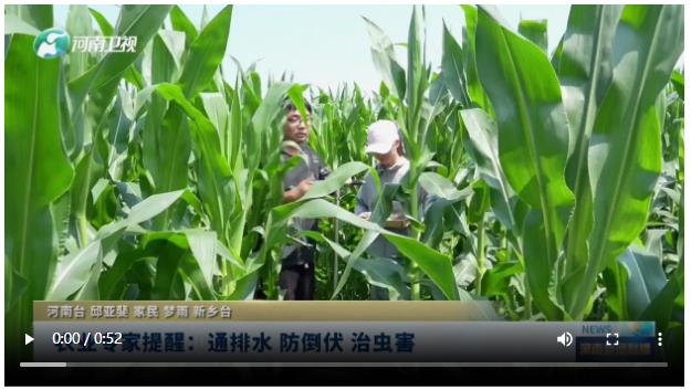 中国农科院玉米产业专家团科技小分队队长 国家玉米产业技术体系岗位科学家 研究员 刘战东:要及时的疏通农田的一些沟渠,做到排水的通畅。同时呢,做好这个水肥的精准调控,构建一个玉米的一个合理的群体结构,避免这种大风大雨前的这种灌溉施肥,降低玉米倒伏的风险,针对病虫害的发生呢,适时开展这种统防统治,遏制这种爆发的发展势头啊。