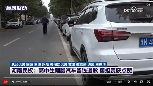 河南民权:高中生剐蹭汽车留钱道歉 勇担责获点赞
