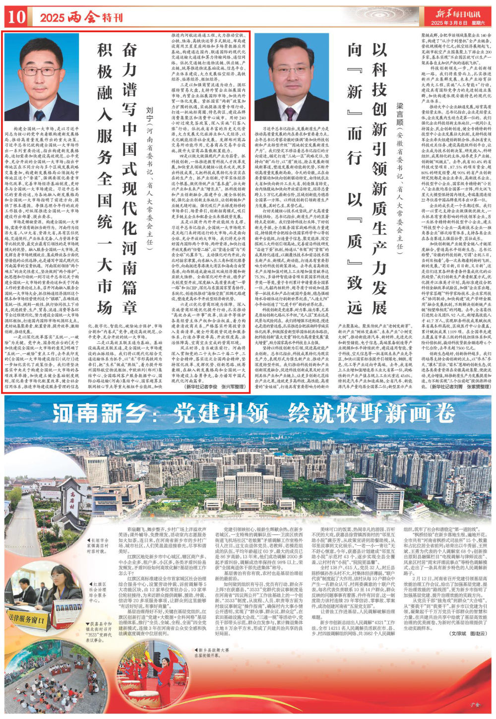 风正时济,自当破浪前行。河南将深入贯彻党的二十大和二十届二中、三中全会精神,落实这次全国两会精神,坚持深化改革、发挥优势、创新思路、统筹兼顾,在融入新发展格局和全国统一大市场建设上奋勇争先,奋力谱写中国式现代化河南篇章。(新华社记者李俊 张兴军整理)