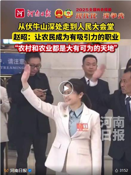 3月11日下午,人民大会堂中央大厅,十四届全国人大三次会议最后一场“代表通道”开启。全国人大代表、河南南阳雅民农牧有限公司总经理赵昭自信大方,走上“长枪短炮”林立的通道。