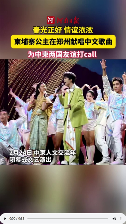 前不久,柬埔寨公主诺罗敦·珍娜来郑州参加中柬人文交流年闭幕式活动,并沉浸式体验河南美食和文化。在一场演出中,她唱了一首原创中文歌曲《春光正好》。