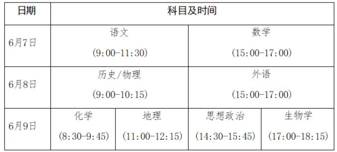 18.全国统考和选择性考试于6月7、8、9日举行,具体安排如下:
