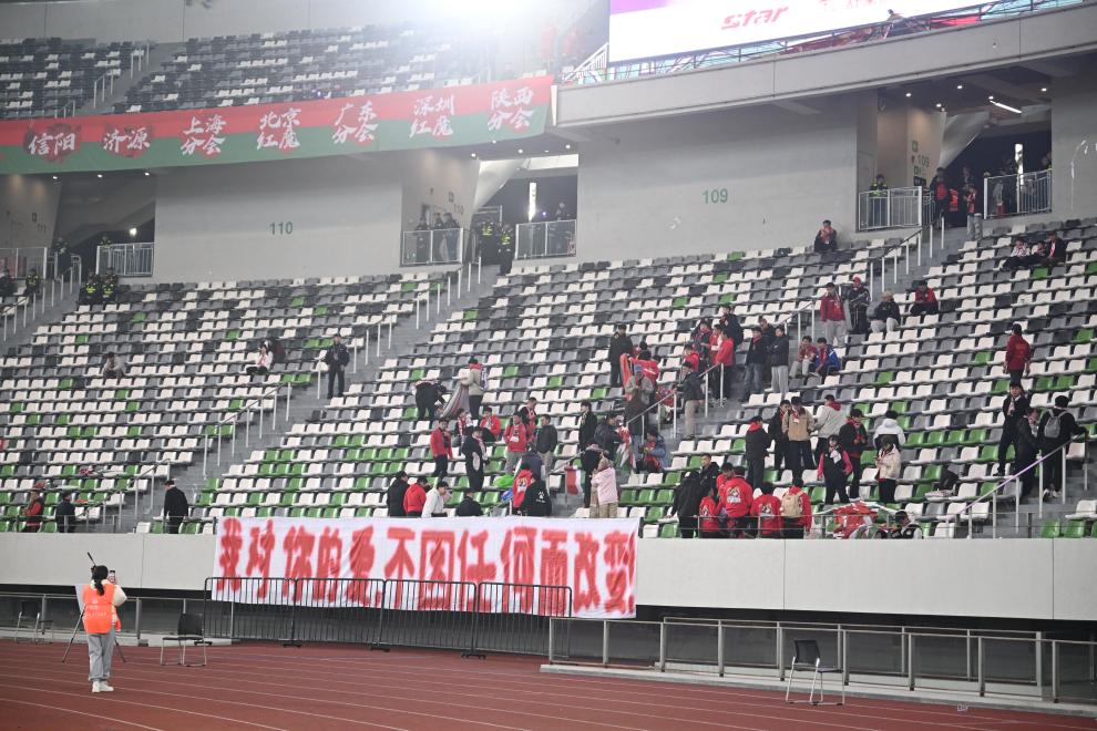 △12月6日,足协杯决赛赛后,河南队球迷在看台上。新华社记者 李嘉南 摄