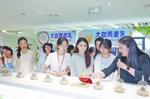 在大咖国际食品有限公司,令黄启鸣印象最深刻的是参观蜜雪集团·大咖国际茶饮梦工厂。“通过这里新颖的沉浸式体验模式,我不仅全程见证了一杯奶茶诞生的过程,而且详细了解了该企业高质量发展的思路和‘以奋斗者为本,以顾客为中心’的经营理念,掌握了许多书本上学不到的知识。”黄启鸣说。