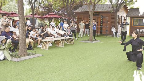 豫港学子在温县陈家沟观看太极拳名家表演。