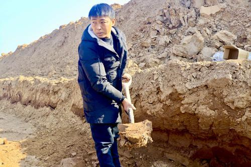 图③ 郭新林挖采黄河泥印用的胶泥。