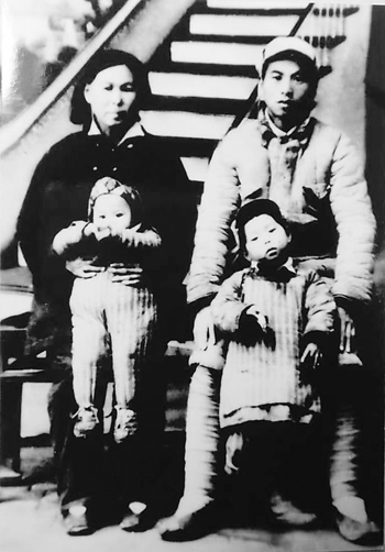 赴朝作战前,璩怀珍与妻子以及两个女儿合影留念。