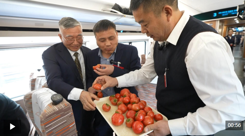 在前往北京参加两会的高铁上,全国人大代表、“番茄支书”陈保超热情推介家乡的新品种番茄。河南兰考白云山村,这个昔日的盐碱地如今结出了“致富宝”,陈保超带领群众严格把控种植细节,将小番茄做成了大产业,村子也被大家亲切地称为“番茄村”,老百姓的日子越过越红火。