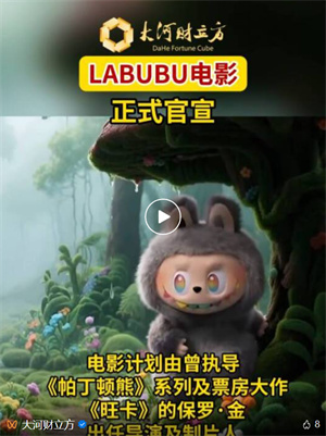 在已有销量基数较大的情况下,LABUBU影视化未来能否让该IP持续火爆,大河财立方记者将持续关注。