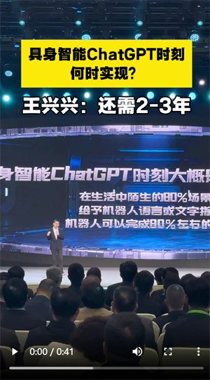 他还分享道,他从美国硅谷回来的朋友认为,仅需18个月就可实现具身智能的ChatGPT时刻。王兴兴说,今年或明年,具身智能领域依旧会有非常大的技术进步。